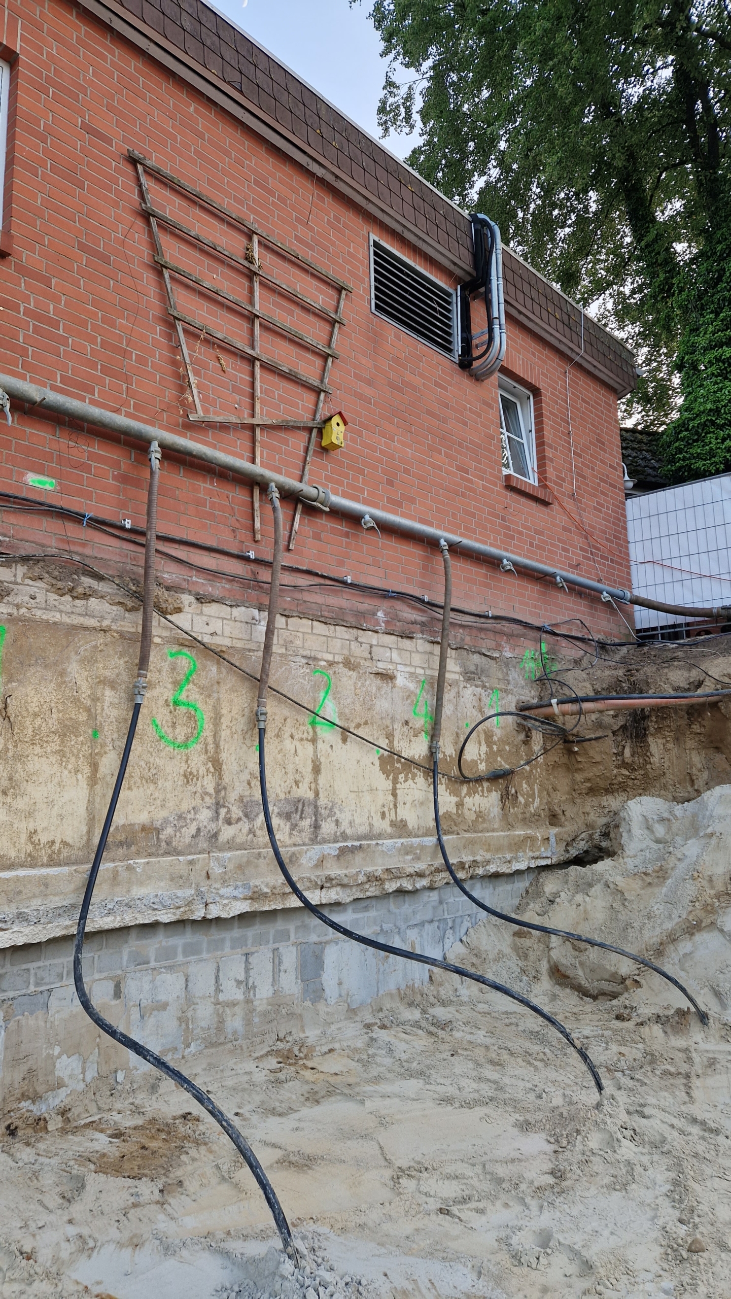 At the end of last month we were so happy that construction had started and the diggers were shoveling properly, but less than a week later they had to stop, because part of the existing building still had to be demolished, otherwise it was in danger of collapsing. So the dirt remained where it was and the demolition excavator had to return. I wonder if our hearts stopped for a moment there? I don’t think we need to explain the meaning of a factory not being able to complete its work according to a tight time schedule. But, thanks to a few connections and a bit of begging everything went super fast and we are still on schedule. While the ground works are still in full swing, the pumps of the ground sinking remind us day and night that something big is being created, we continued to work on the wellness area on paper. The first result will soon be available for you to see. Although the first result is not quite correct. Up to the plan, which we may show you soon, we have already tinkered around on a dozen other plans, painted and pondered. Somehow it’s strange, how many little things you already have to decide, like: where to put which lamp, and which power distribution, sockets and which air circulation and air pressure areas we need, although not even one stone has been placed, nor any room concept could be experienced “visually”. Nevertheless, we are still in good spirits, trying to think our way through all the questions posed by the specialist planners and construction companies and to make smart decisions. And we know that we will rock this. We are putting all our energy and love into this project and there is really no other way than for it to be good. You can see the current state of the construction site in the picture above. A huge hole for the basement and pool area. On the right you see the area for the new hotel wing and the parking lot and with the picture, on which the bird house is to be seen it has also something special on itself. So “unfortunately” we could not remove this yet, since new life develops in this small house. So the sparrow mother may still raise her little ones and then, sadly, this little house must also move. (Don’t worry, there are still enough nesting places on our ground).
