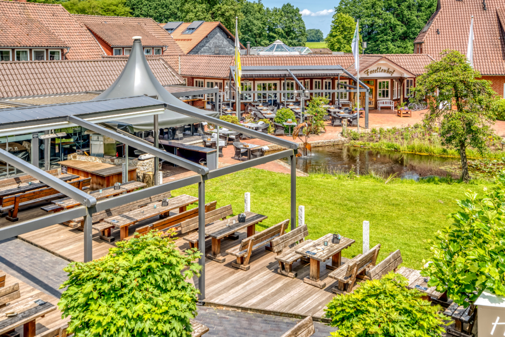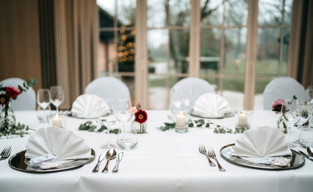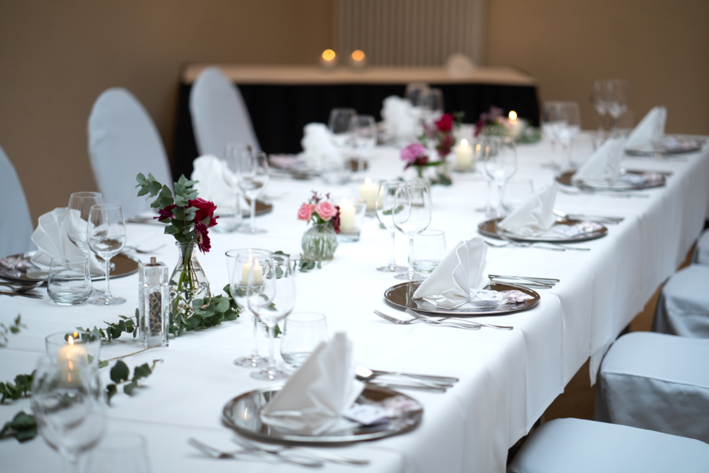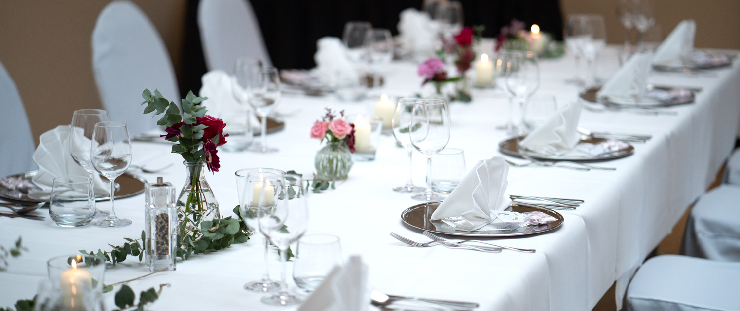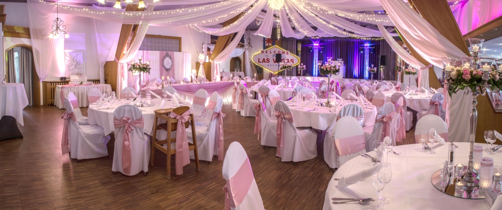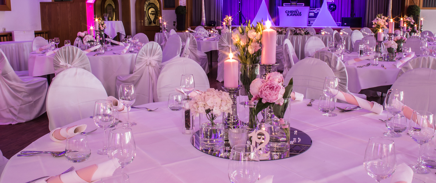 Celebrate with us in our attractive premises. Whether you want to enjoy a romantic dinner for two or plan a celebration with up to 450 people. Our banquet rooms offer the festive setting for your family celebrations or company parties. The stage system in our banquet hall is equipped with outstanding sound and lighting technology that will put your events in the right light. A lifting stage, with which you can make your dessert buffet appear out of thin air, ensures unforgettable moments. Ideal for wedding celebrations: with a horse-drawn carriage from the church to the front of our wedding suite.