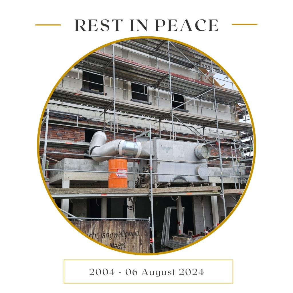 Anyone who has been on the building site in the last four weeks will have heard our monstrous heating system humming from the old festival hall. Unfortunately, it is no longer humming as it has not survived its use. It dried everything reliably until it was to be loaded back into the festival hall yesterday and unfortunately tipped over from the wheel loader. I don’t think we need to tell you how annoyed we were. At least she was able to complete all the relevant work beforehand. Let’s look on the bright side.